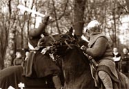 ![]() | IV Turniej w Iłży - Ze względu na jesienne kaprysy pogody, w tym roku zdecydowaliśmy się na maj i był to wspaniały pomysł. Teraz Iłżecki turniej na stałe, w kalendarzu rycerskim, zapisał się jako impreza otwierająca sezon. To od tego turnieju zrodziła się idea stworzenia najlepszego i niepowtarzalnego turnieju przypominającego prawdziwe średniowieczne imprezy. Wtedy też odbyła się niezapomniana bitwa, w której, na dziedzińcu zamku, walczyło 40 niezmordowanych rycerzy. Po raz pierwszy w Polsce w trakcie bitwy nie obowiązywały żadne zasady, walczyło się do ostatecznego pokonania i powalenia przeciwnika. Niezapomniane widowisko pełne płomieni pożogi, jęku rannych i wiwatów zwycięzców. |