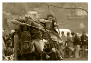 ![]() | VI Turniej w Iłży - Idąc za ciosem poprzedniej imprezy rozwinęliśmy idee wprowadzając w tym roku już oddzielne obozowisko za zamkiem, zarazem dając miejsce na placu turniejowym koniom!!! Tak jest w tym roku pojawiły się konie - które dały naszej imprezie prawdziwy królewski szyk. Pomysł spodobał się zarówno widzom jak i uczestnikom, z roku na rok na pewno będziemy go rozwijać. |